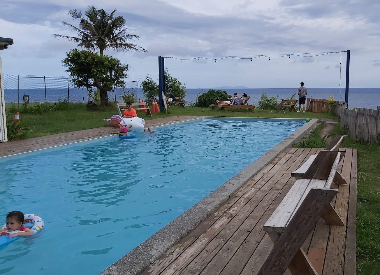 吃完飯還可以到前面的泳池邊看海曬太陽 太棒了!