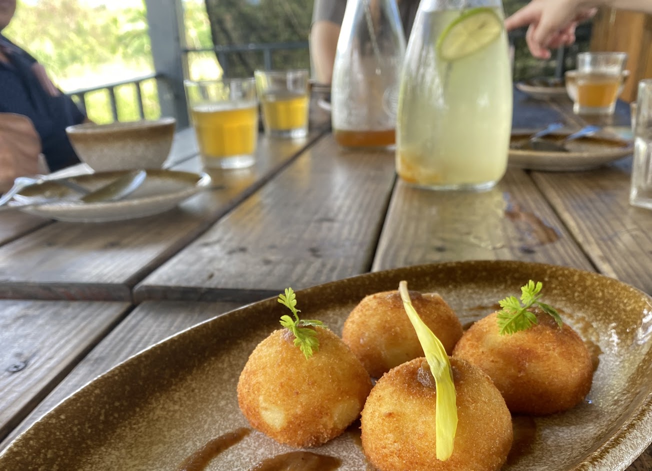 風景場地超棒,很大又美又放鬆,食物真的很普通…..點了青醬寬麵,吃得出青醬是自己做的,可是沒有鹹味,所以要求了鹽自己撒….水果紅酒sangria真的很好喝,推薦來這裡喝飲料喝酒但不要吃