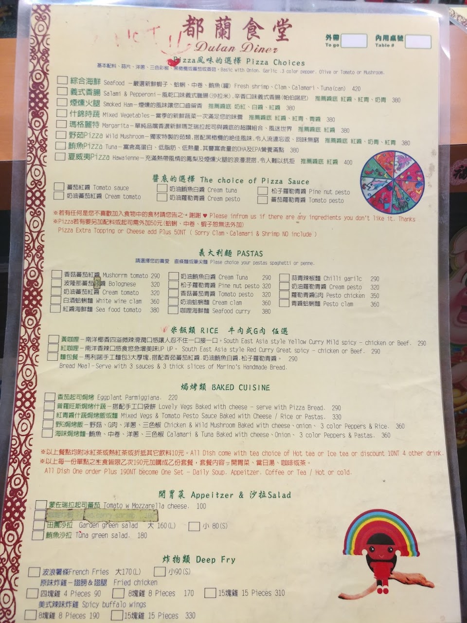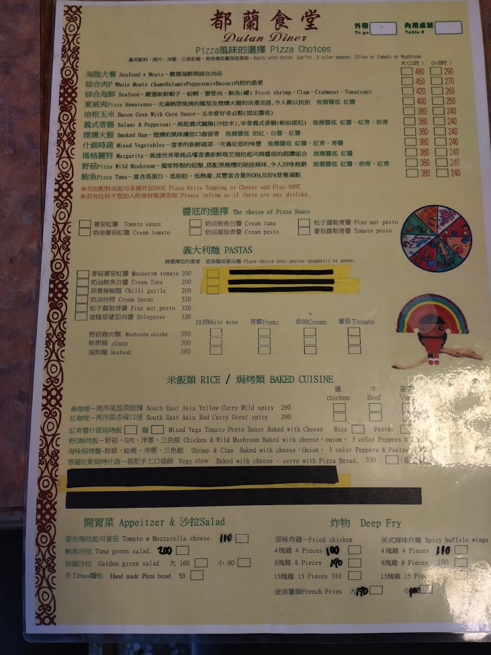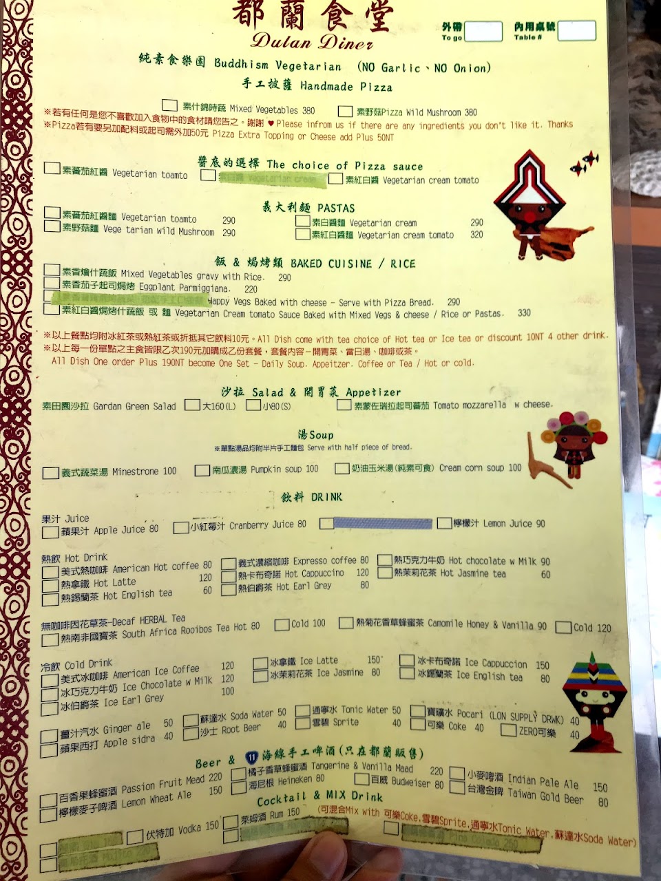 本來是要吃都蘭安堤歐義大利披薩 dulan antteo a mano pizza 的,後來買了馬利諾廚房的麵包,看到隔壁的都蘭食堂,一時誤以為就是安堤歐義大利披薩,還特別詢問了老闆娘,沒有想到老闆娘說謊,說就是這裡!最後結完帳,等上披蕯的時候,越想越不對勁,因為左看右看都不像,才發現上當受騙。披薩上來的時候,餐盤上爬著螞蟻,給予分食的盤子上面也有,廁所地板也躺著死蟑螂布滿了螞蟻。味道可以接受但不突出,但實在無法接受到處都是螞蟻,以及說謊話的闆娘。誠信實在太重要了❗️