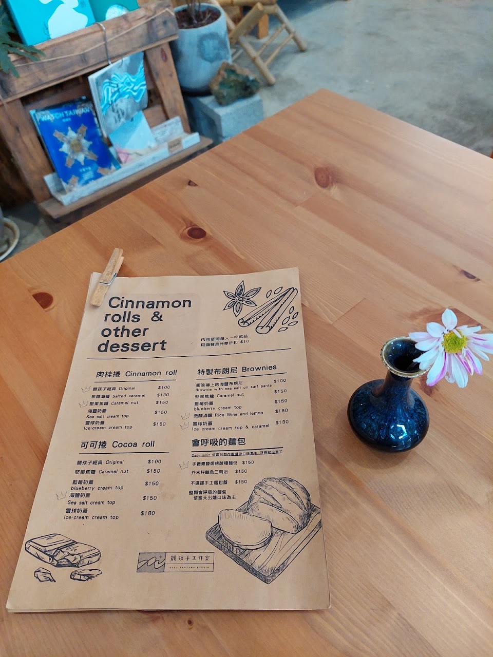 一間充滿衝浪攝影、手做和綠意盎然的工作室,當然還有少不了有台東味道的肉桂捲,口感像是麵包紮實又柔軟,布朗尼和黑眼豆豆餅乾也是吃了會舔手指,在這吃或是帶回家享受,都為生活加分?? …
