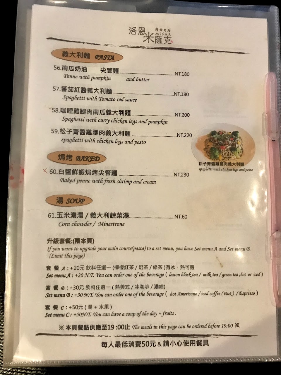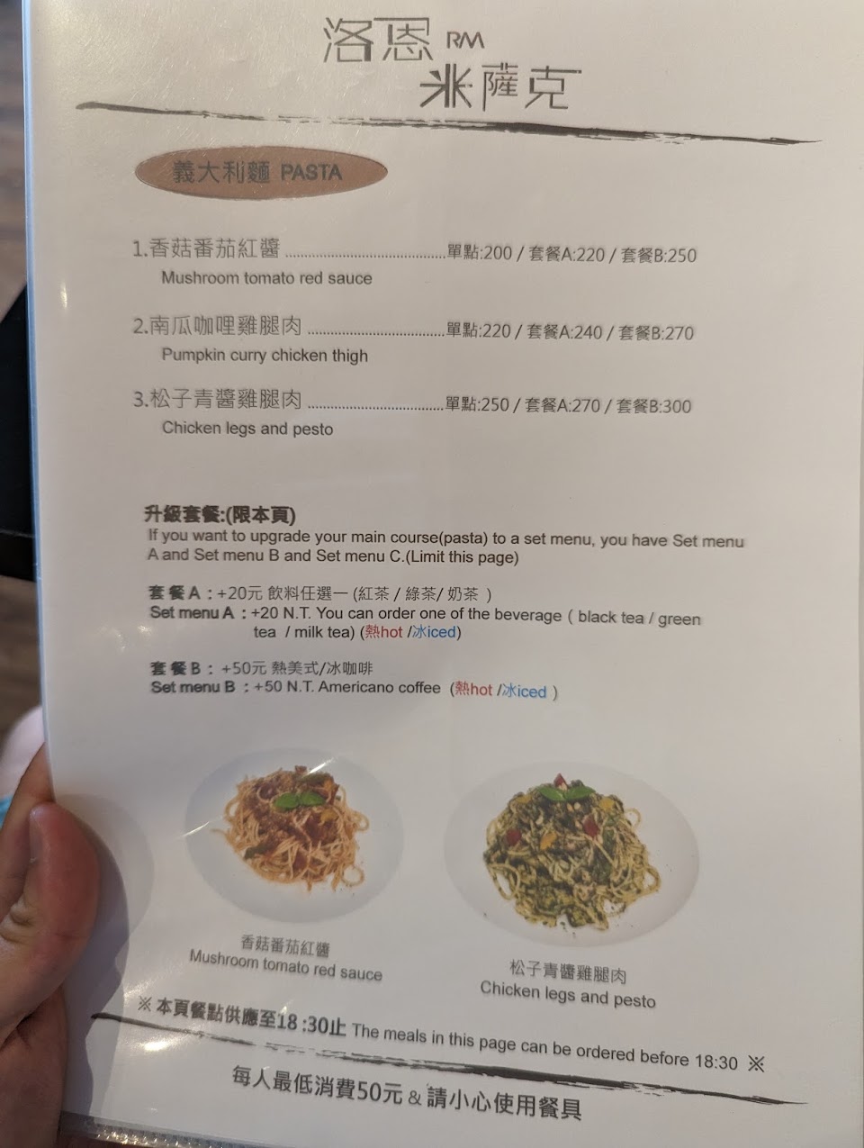 低消50元、週一跟週二公休。