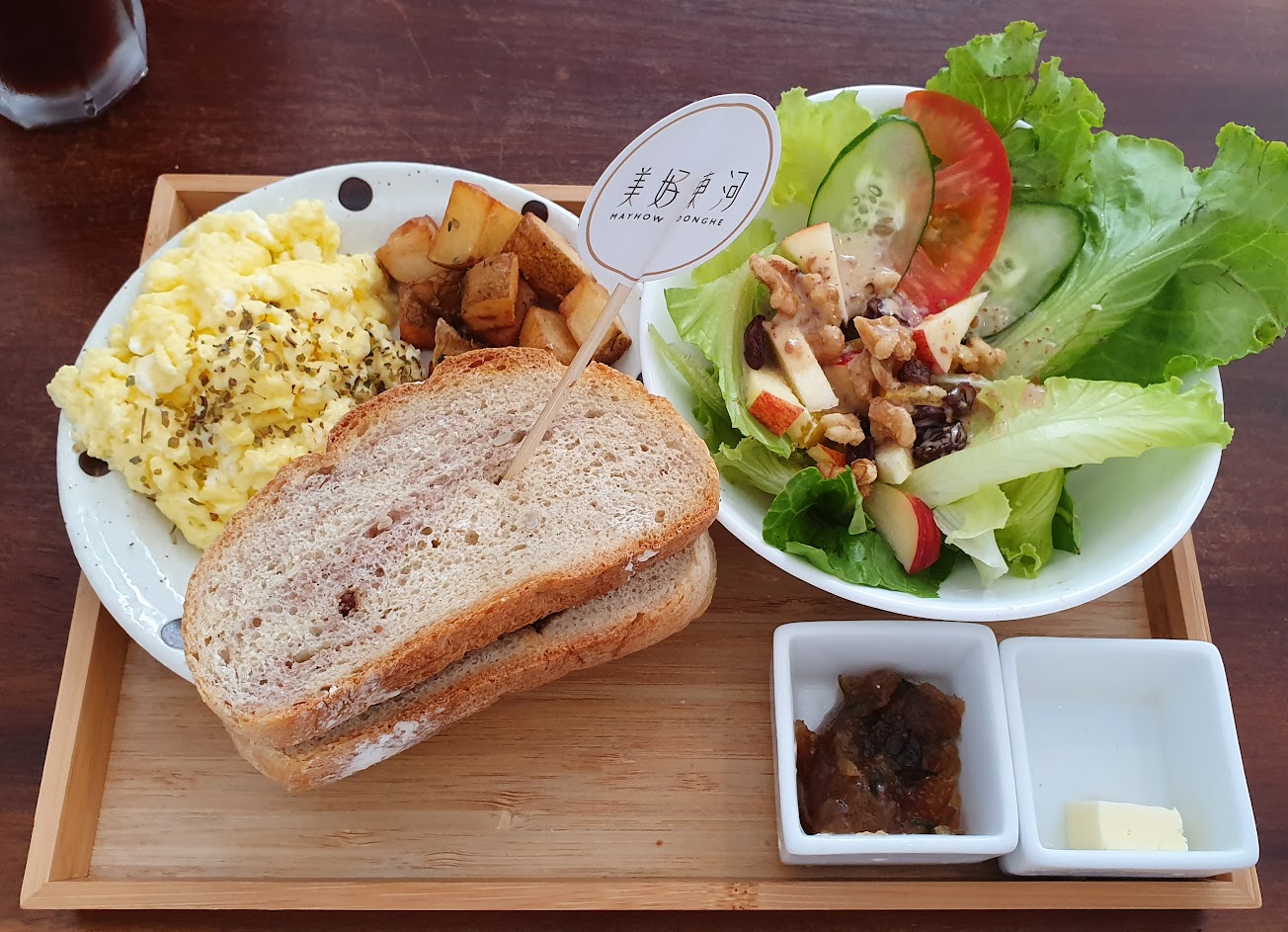早午餐味道都不錯,份量適合女生,剛剛好;尤其是鄉村麵包、果醬跟起司?