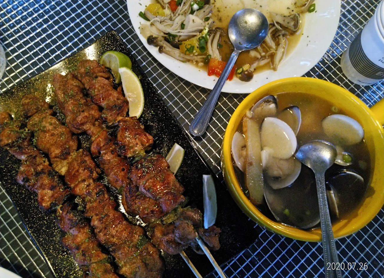 吹著夏夜晚風,在院子吃 BBQ 非常舒服,遠方還可以看到海景,東西很好吃也不會太貴,老闆烤的很棒,強烈推薦一定要吃吃烤鹽烤鯛魚,老闆很細心的把內臟清除後,在裡面塞了菜蒜和香料,吃特很過癮。
