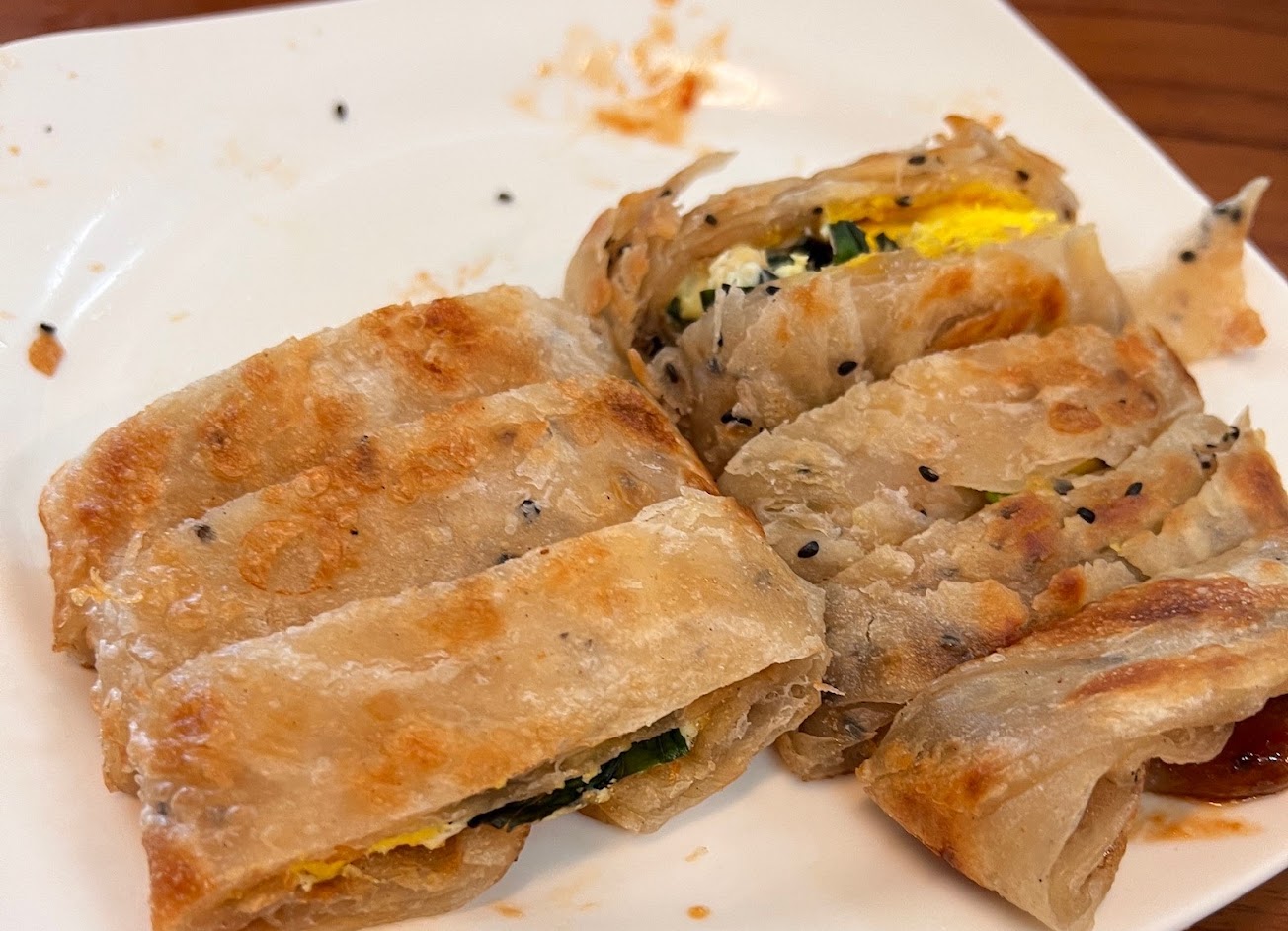 蔥油餅(好吃,內為九層塔蛋)
