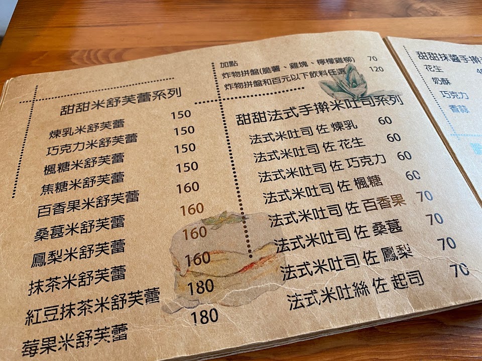 米舒芙蕾和米法式吐司好好吃,可能是我吃過最好吃的 米布丁有點偏甜,但是味道也很濃郁 老闆很親切,好棒有這家美食店~