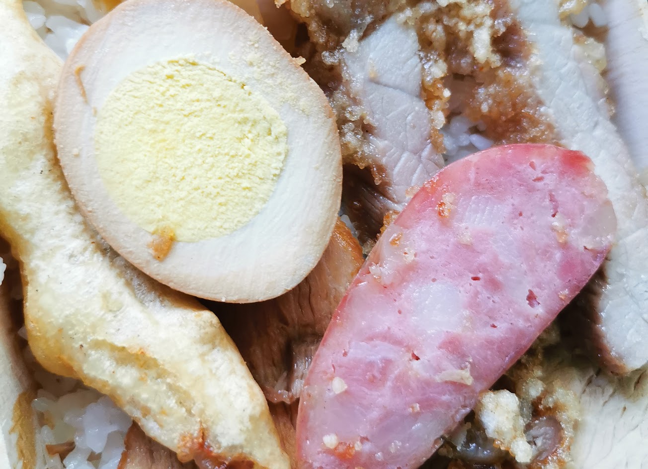 根據其他朋友分享的照片,平日應該是有青菜可以夾的… 也許因為我光顧的時候適逢春節假期,飯包裡有燒肉、炸肉跟魯肉片,醃蘿蔔,米粒是美味的,只是便當充滿各種肉類,我個人不喜歡。覺得挺失望的。