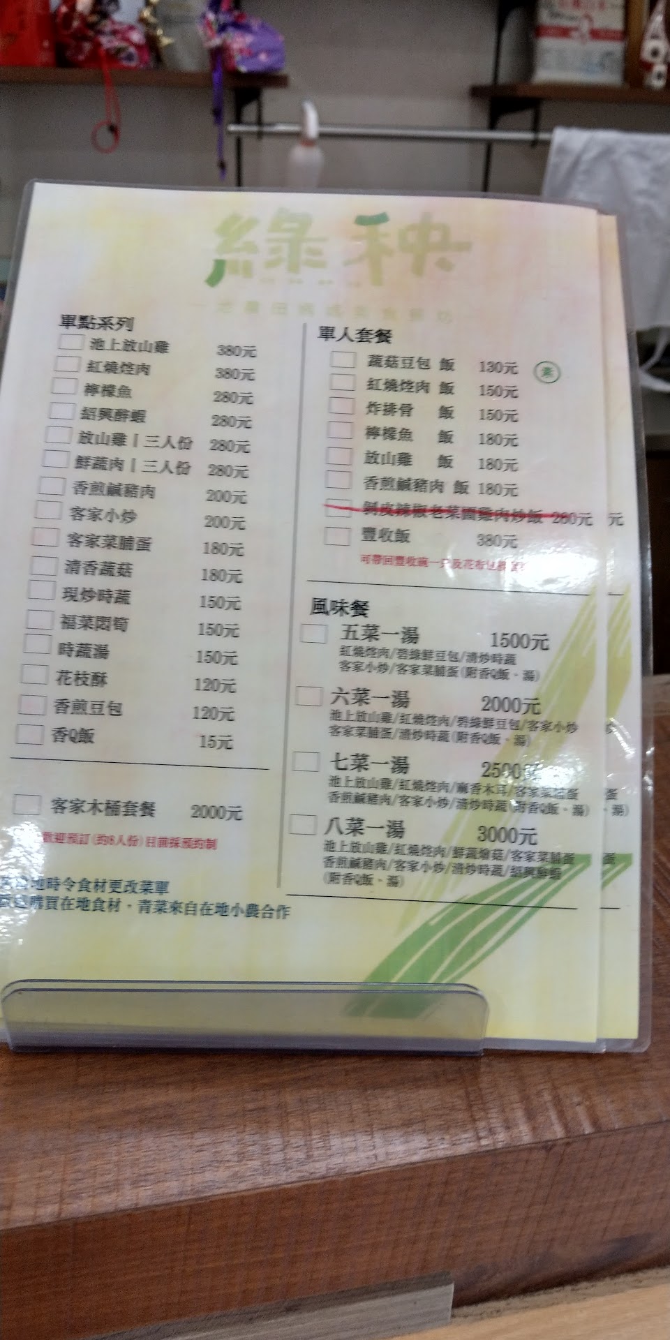放山雞套餐180元,上方豆皮120元,可以使用農業體驗券250。風味尚可,但180元稍嫌可惜,環境整潔,附近有咖啡館可供瀏覽。