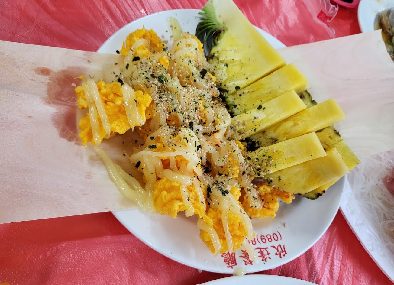 今日來吃海鮮,朋友選了這一間餐廳,點了海瓜子跟生魚片,還有鳳梨蝦球,海鳳螺,炒麵,白蝦,哇,真是大好吃了,尤其是那個鳳梨蝦球,跟外面餐廳吃的不一樣,鳳梨也是很甜不酸又不刺嘴,東西新鮮,推薦有機會來到當地遊玩的人要來嚐嚐鮮,真的好吃唷!