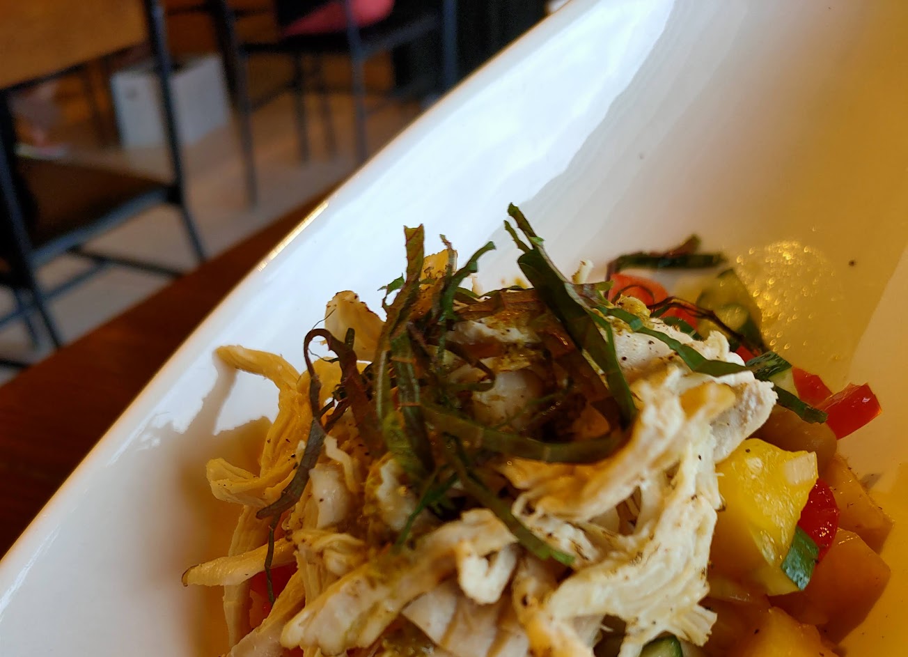 第三道烤雞翅,因為有香菜辣椒鳳梨辣椒酌料點綴調味,雞翅顯得味道多了層次和豐富!