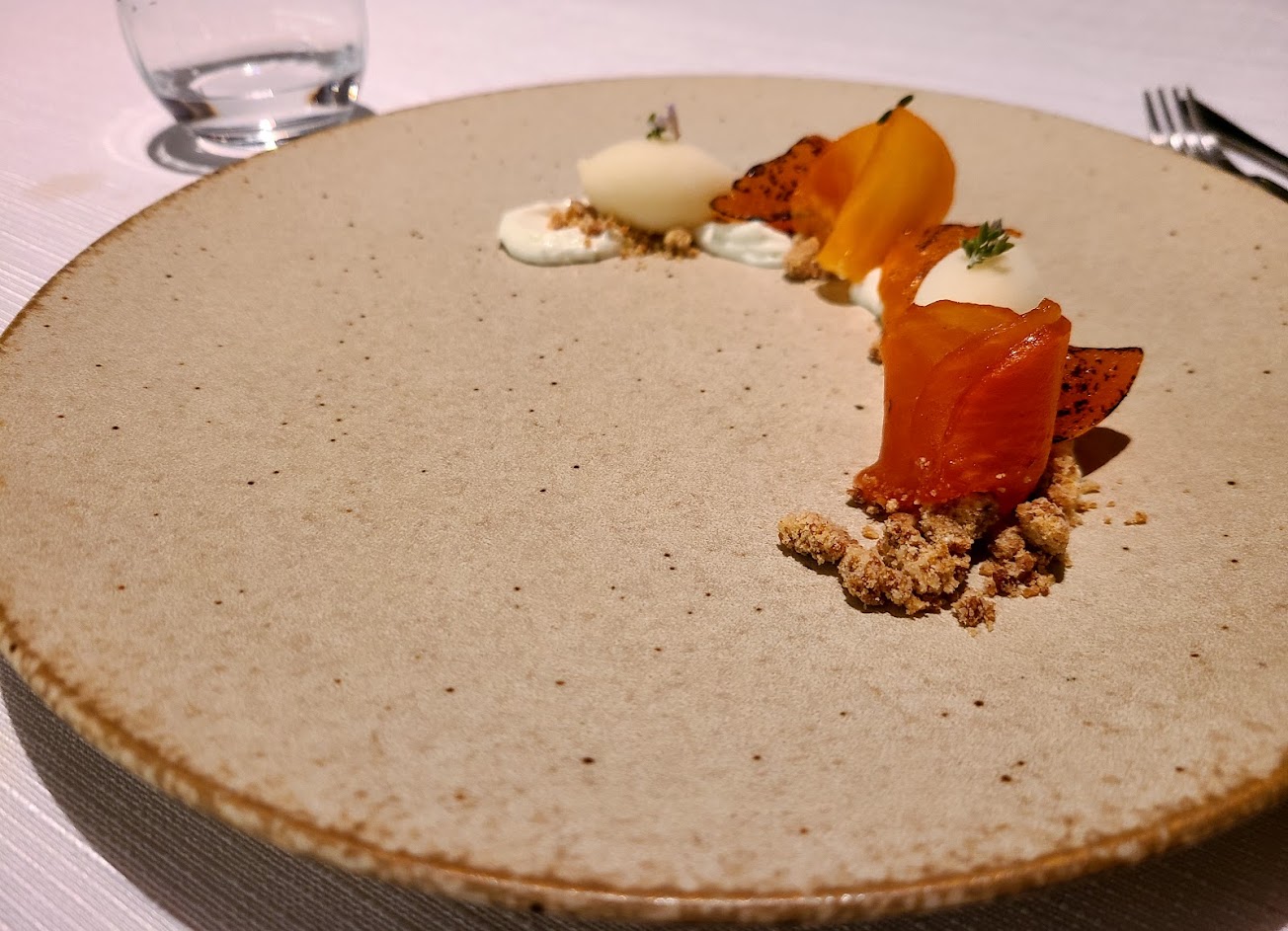 食材、技術、風味搭配、擺盤都不錯,的確能在餐盤裡感受這塊土地的風情,餐點美味,某幾道菜勾起我的回憶。酒單完整,從自然酒到級數酒都有,不太需要自己帶酒來,如果不是非常名貴的酒(因為要另外支付開瓶費和杯子的費用)