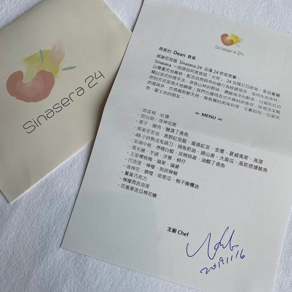 八月去台東就要訂訂不到,年底特地為了這家餐廳再來一次長濱。這次吃的是「冬至」真的每道菜都非常驚豔好吃!吃的出食材新鮮和主廚用心搭配。法式料理很怕為創新硬搭配和吃不飽,sinasera24完全的值得和令人滿意!大推薦