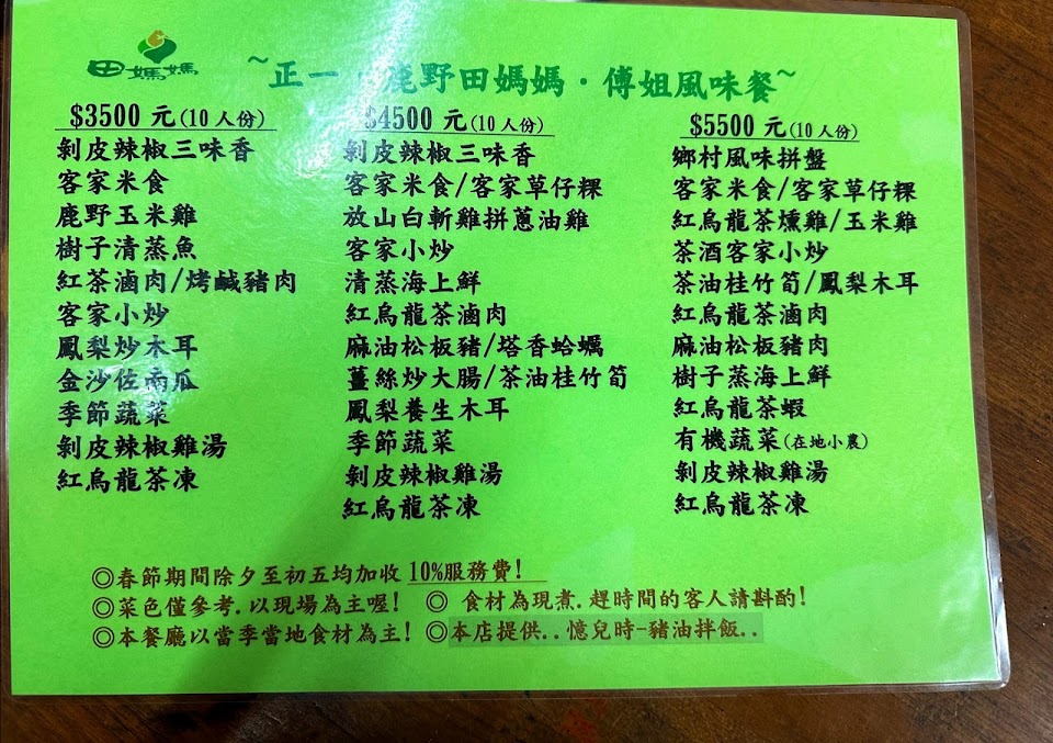 從四重溪到鹿野,找到了田媽媽的菜單料理,一人350元,