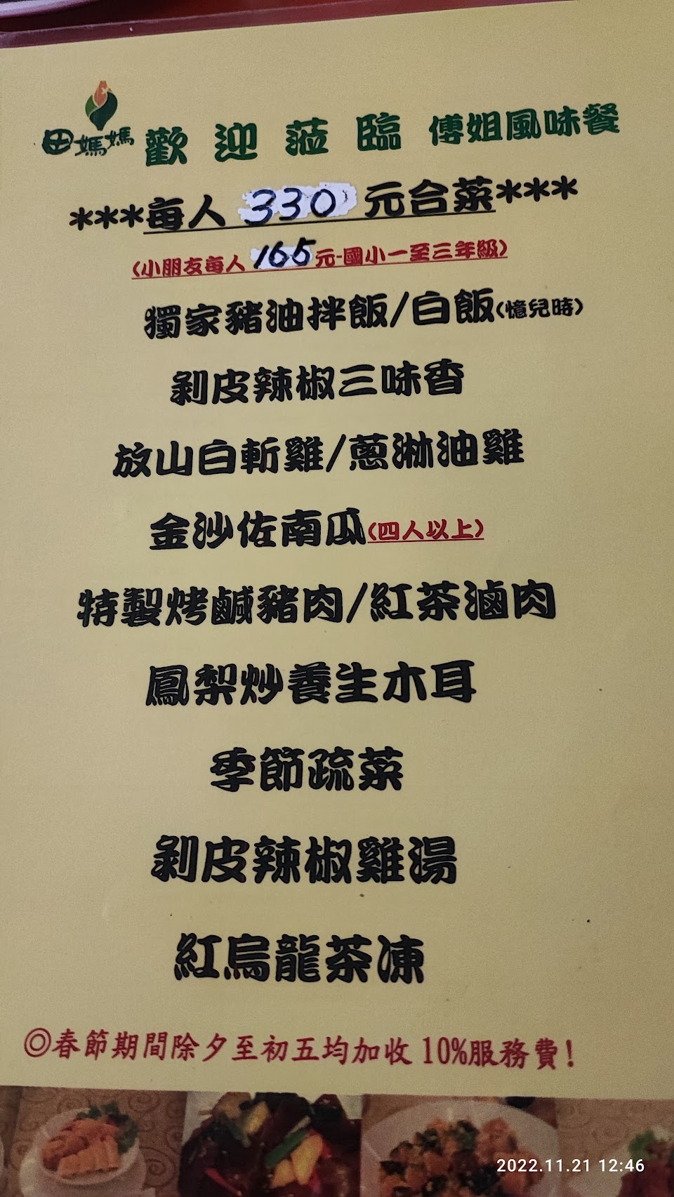原來這個是田媽媽餐飲系統連鎖其中的一家店,全台灣100多家。依照當地的產品食材設計出不同的菜單。