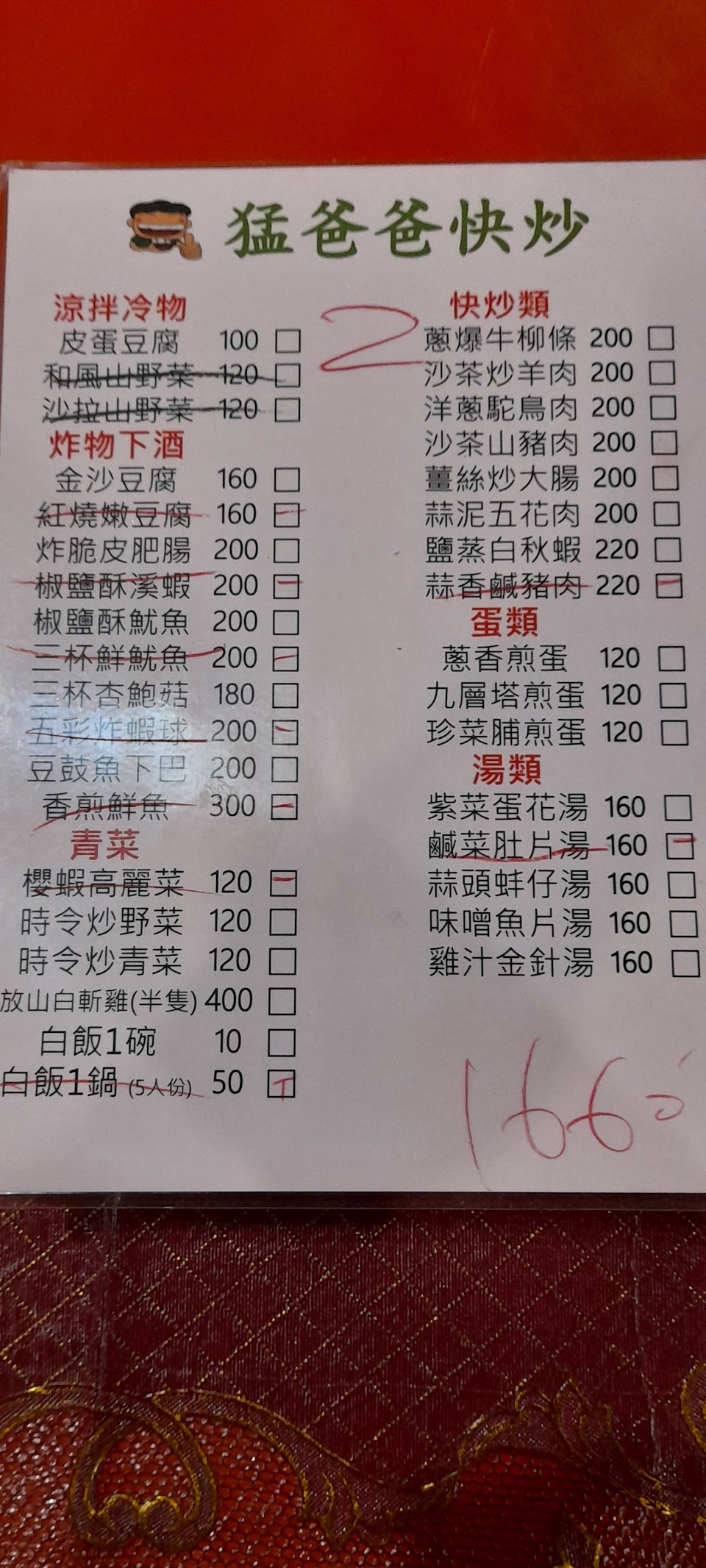2024最新在地推薦餐廳的菜單_猛爸爸合菜‧快炒的菜單、圖片