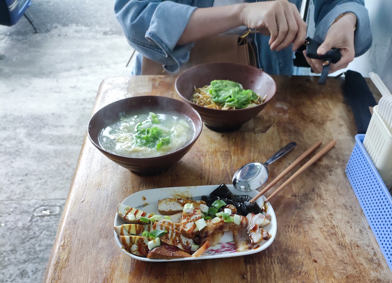 沒有菜單,點菜就是看櫃子裡有什麼點什麼,看網路評價不錯而慕名而來,不是很餓隨便點了乾板條和一些黑白切,坐在戶外用餐區別有一番風味。