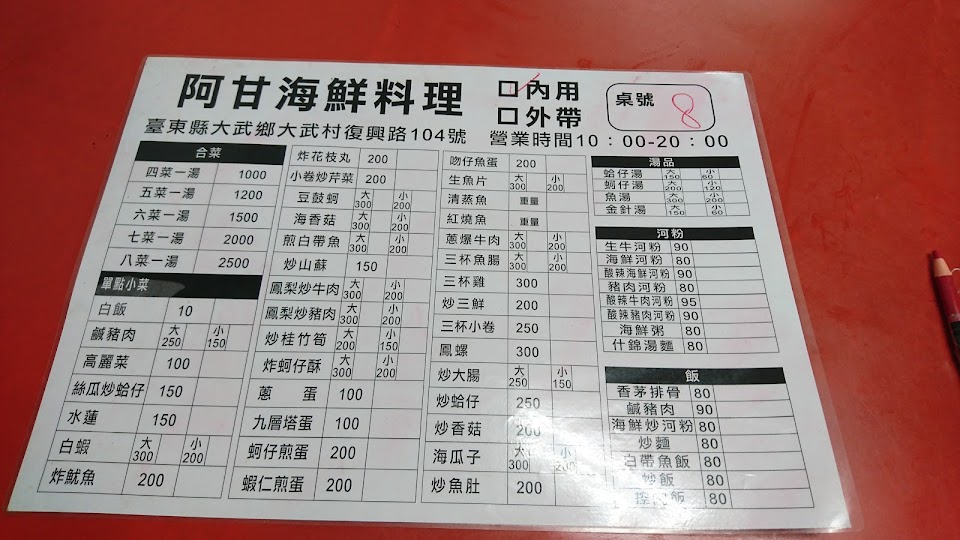 2024最新在地推薦餐廳的菜單_阿甘海鮮料理的菜單、圖片