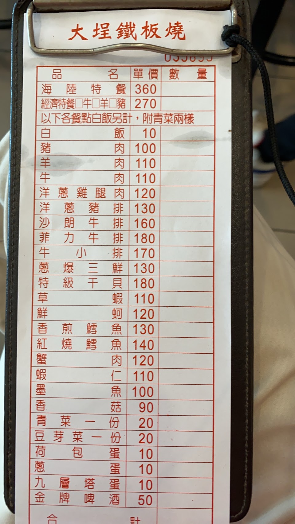 同樣都是大埕鐵板燒,品質差超多,高麗菜黑葉的超多,草蝦超久才上又硬有燒焦的苦味…比較推薦桃鶯路上的大埕,不管是菜的品質或是調味都好的多