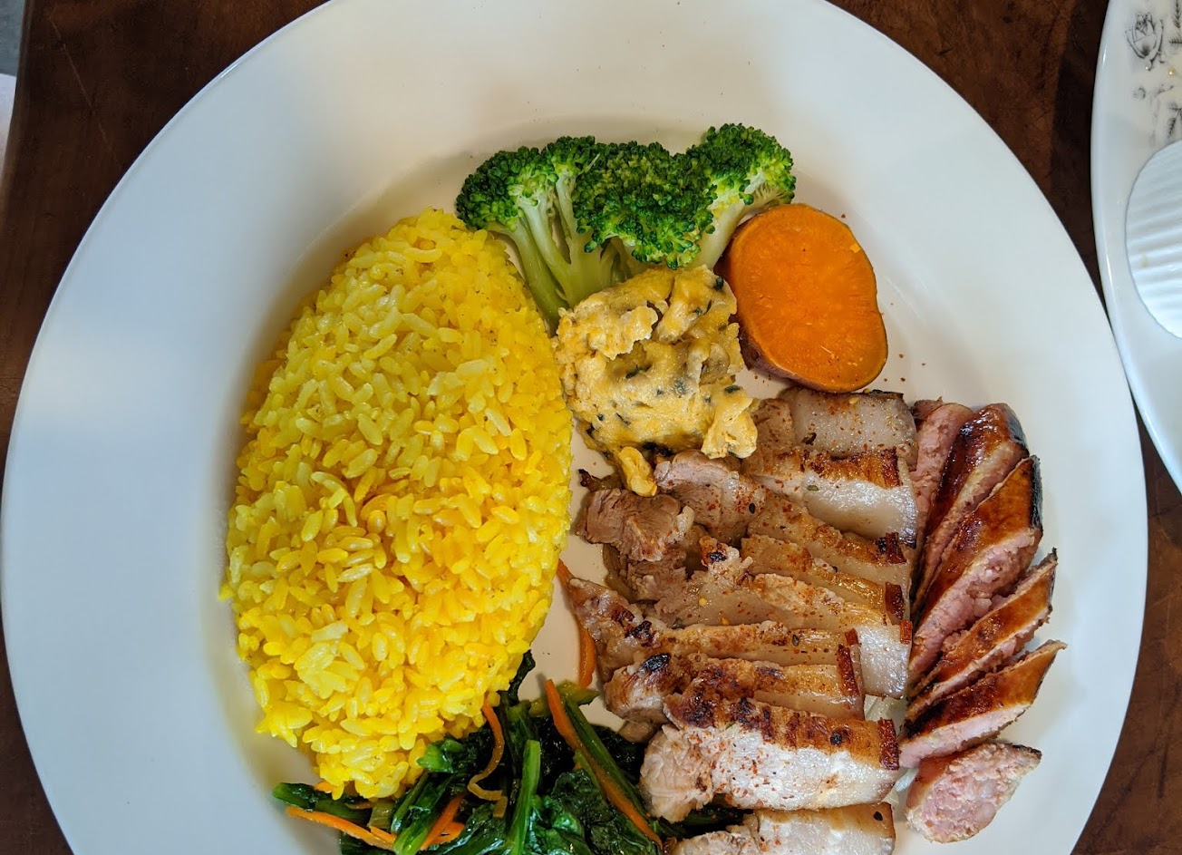 小米酒釀烤肉飯:香腸+豬肉都很好吃