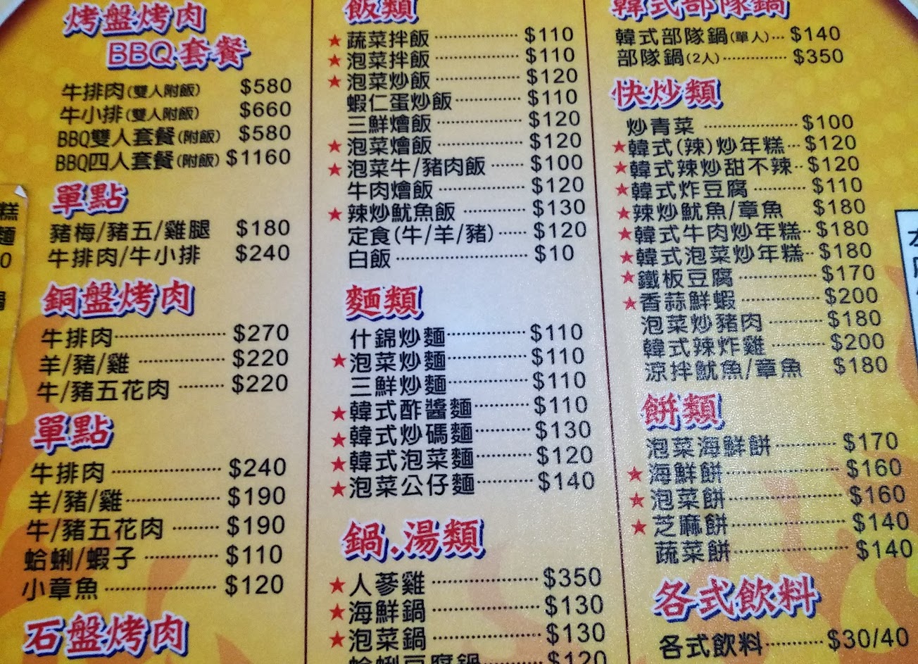2024最新在地推薦餐廳的菜單_韓國板門烤肉的菜單、圖片