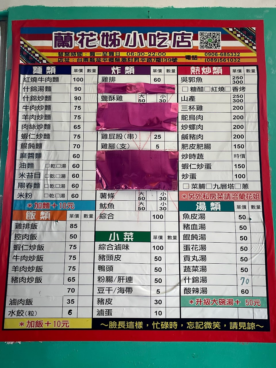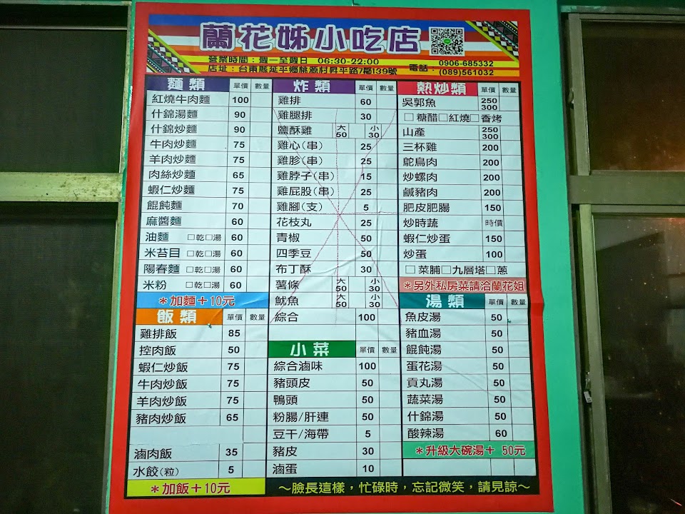 有基本的炒飯炒麵,多人用餐可以點合菜,餐點都很好吃,不過等待的時間比較久,晚上常有部落居民會在此高歌一曲。