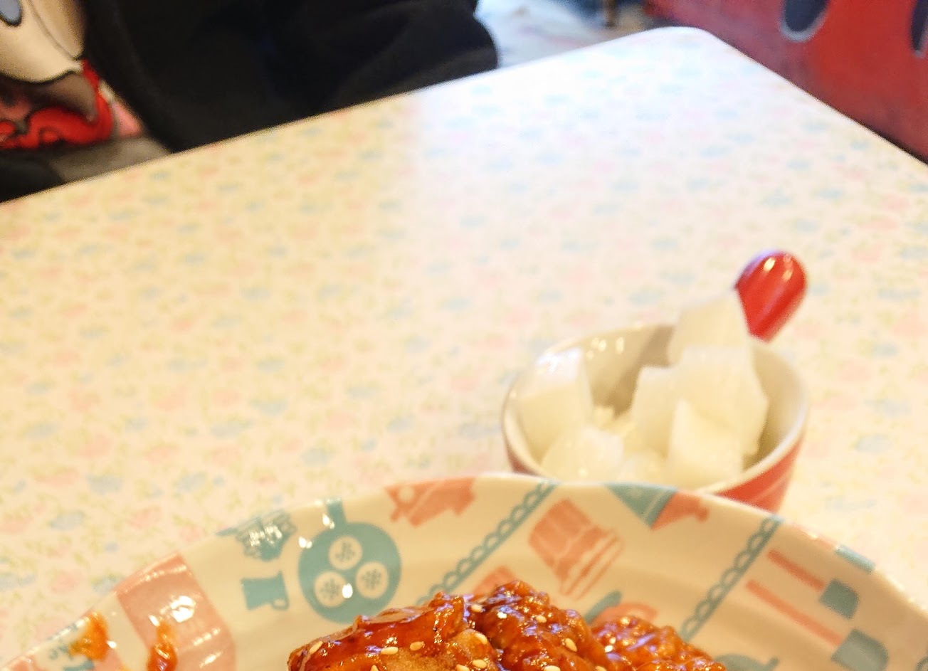 異國風味的炸雞~還有好吃的炸年糕和辣炒年糕~好吃道地! 配上好解膩的醃蘿蔔~讚~