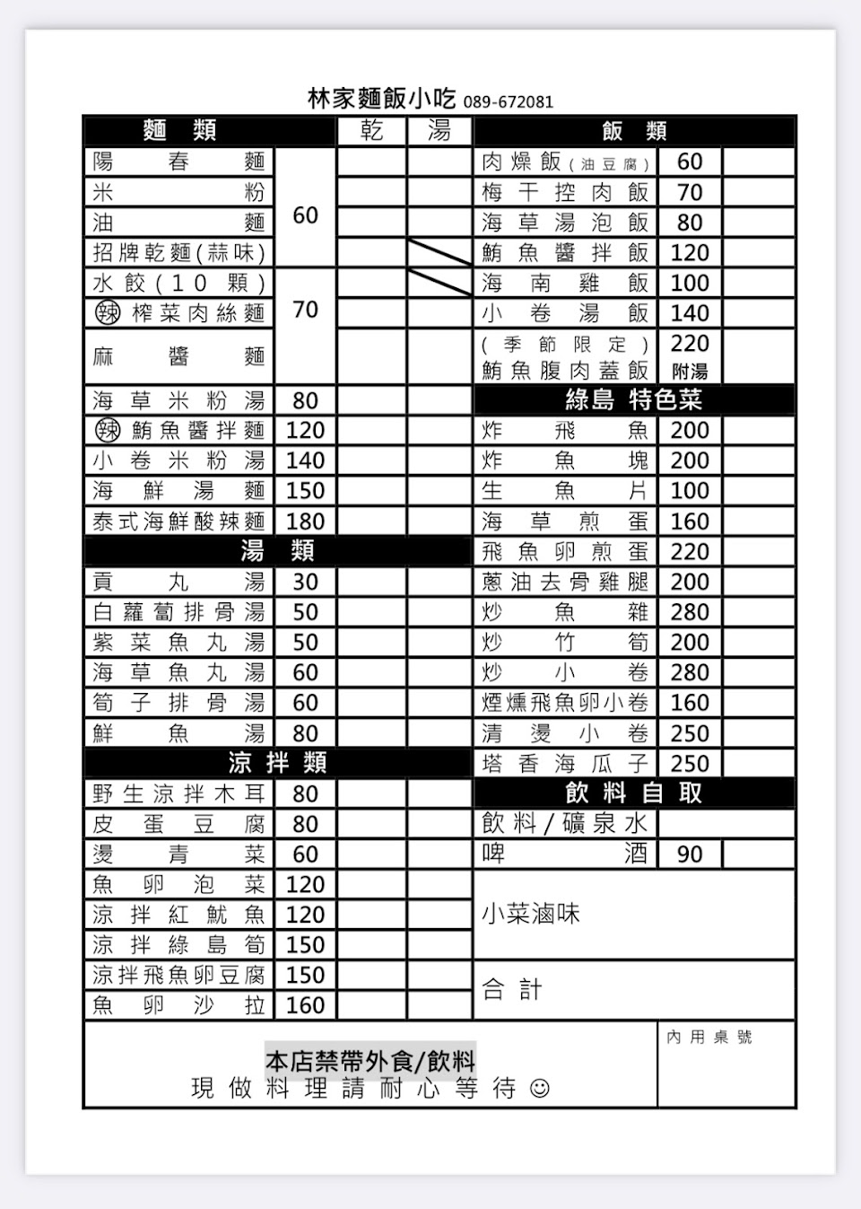 2024最新在地推薦餐廳的菜單_林家麵飯小吃的菜單、圖片