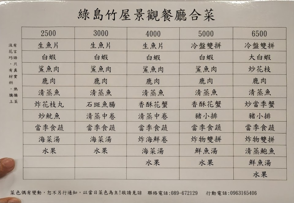 2024最新在地推薦餐廳的菜單_綠島竹屋餐廳的菜單、圖片