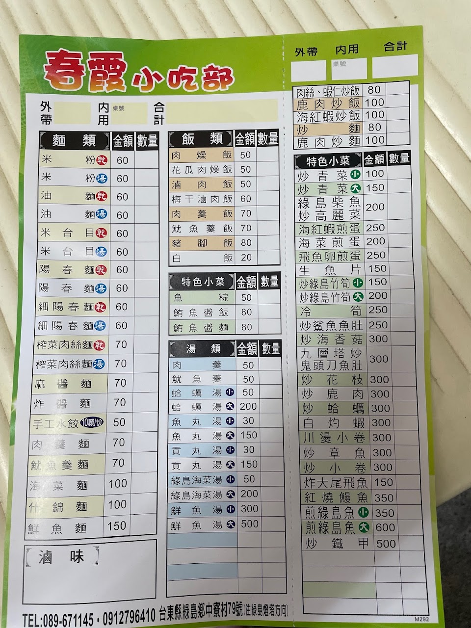 2024最新在地推薦餐廳的菜單_春霞小吃部的菜單、圖片