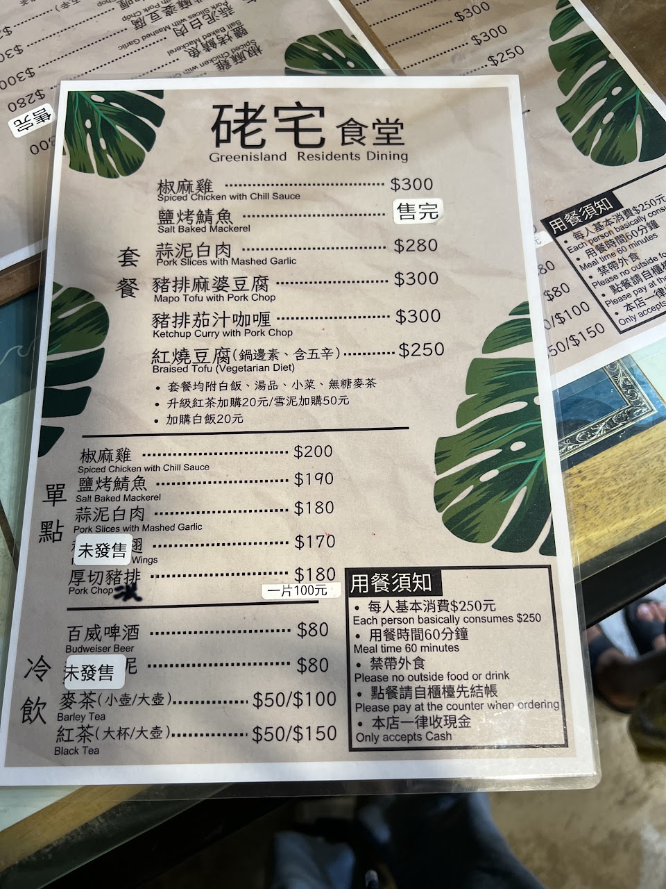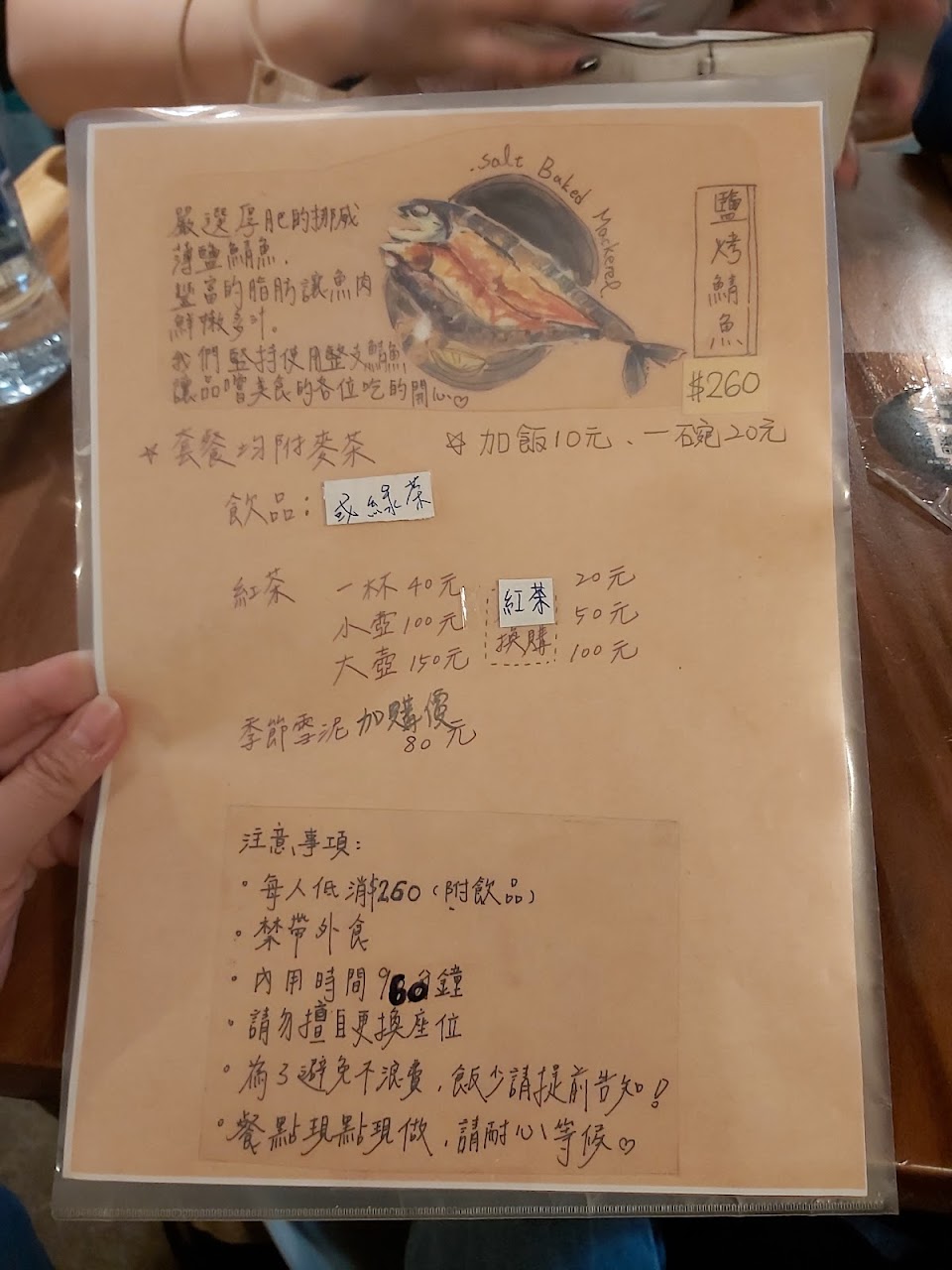 每人低消一份套餐,皆附麥茶