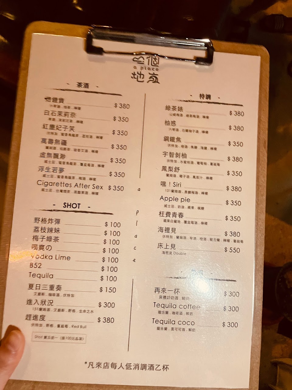 低消一杯調酒,調酒都蠻不錯喝,環境舒適放鬆? …
