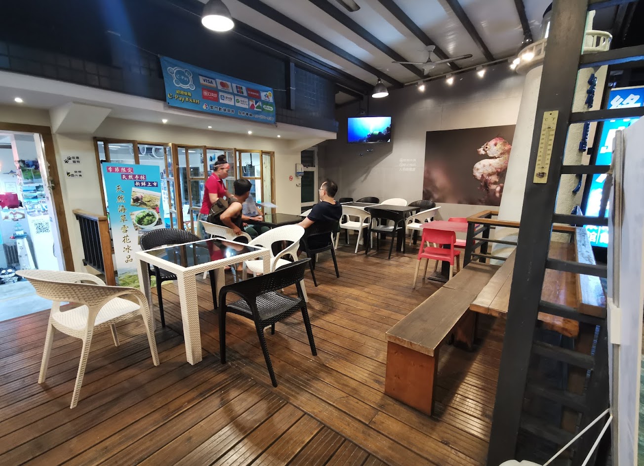 位在綠島大街上同名的冰店,裡面提供不少有趣又美味的冰品,座位區舒適乾淨,裡面的佈置也很有海灘風,其中的曬黑冰最是有特色,是用仙草雪花冰當底,配上味道香濃的花生豆花,味道超好,宇治金時口味的也讚,大熱天很推薦來這邊吃冰。
