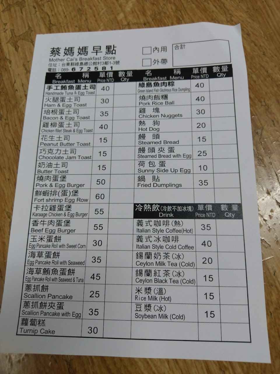 2024最新在地推薦餐廳的菜單_蔡媽媽早點的菜單、圖片