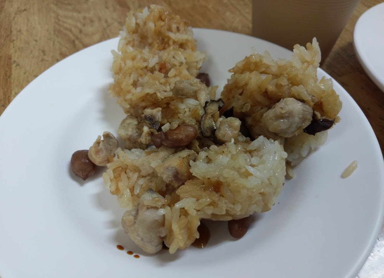 綠島肉粽聞起來有種奇怪的味道,吃起來也有種奇妙的酸味,不過應該不是食物腐敗的那種,整體還行。