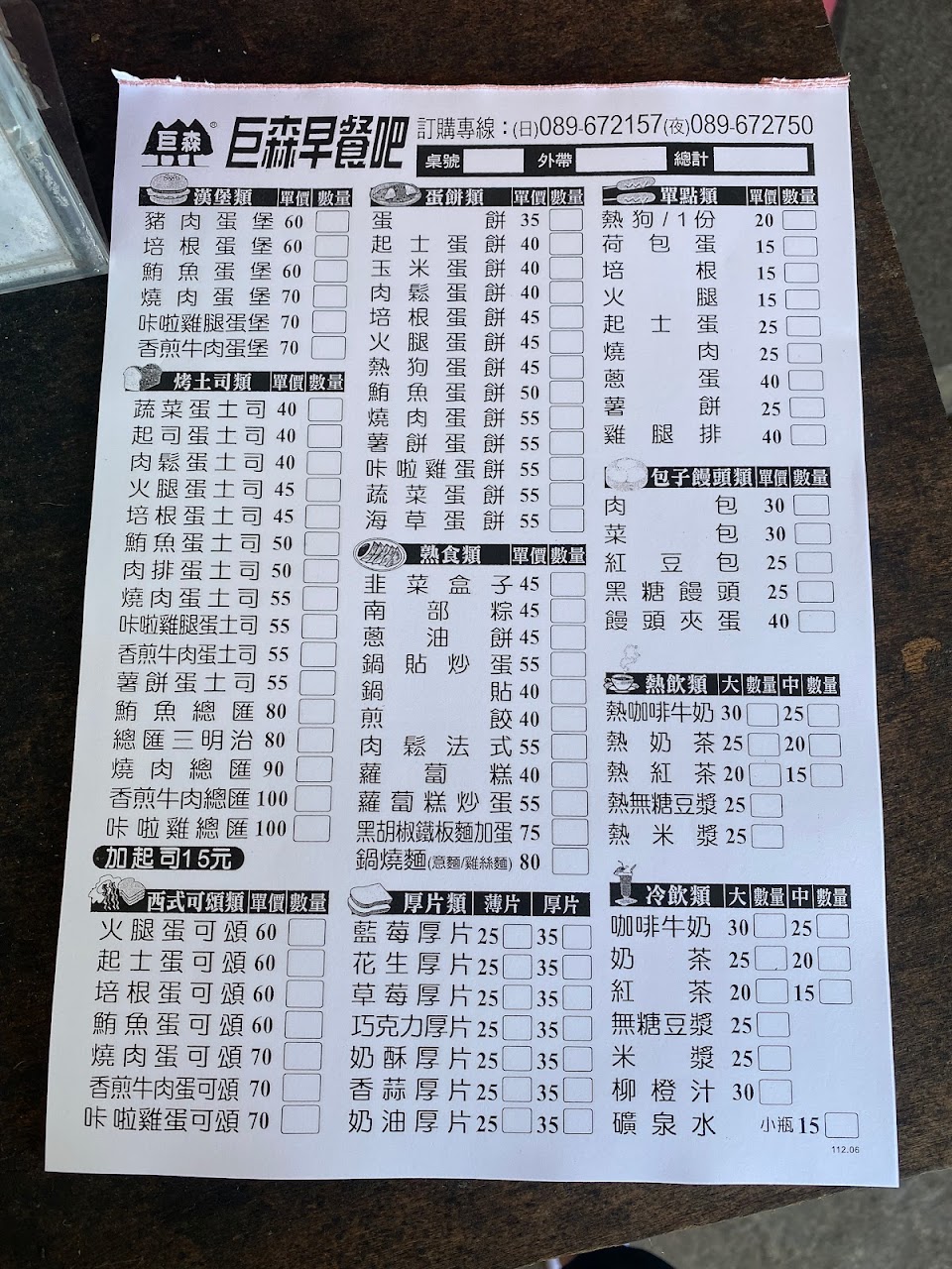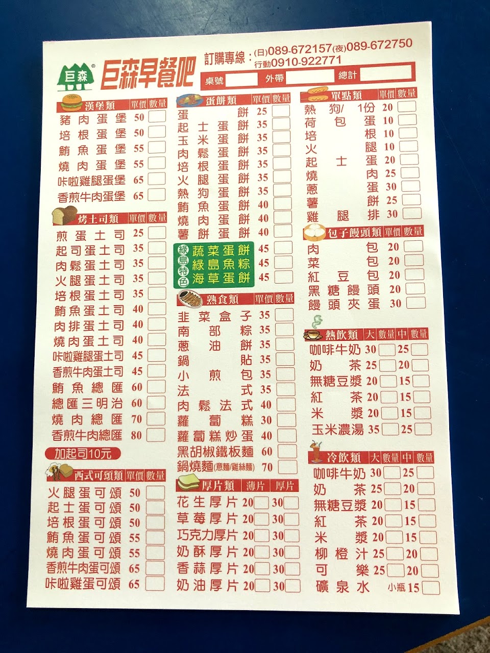2024最新在地推薦餐廳的菜單_巨森早餐吧的菜單、圖片