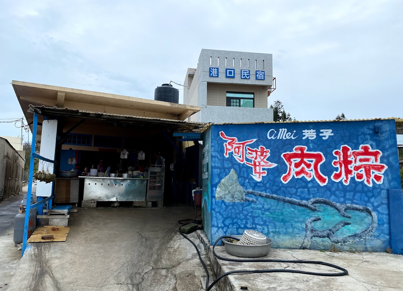 應該是位於港邊鬧區所致,才剛正午,「阿婆肉粽」就門庭若市,來了就嚐嚐味道,我點了一顆肉粽和一碗貢丸湯,肉粽真的熟爛,味道沁入鼻腔的感覺很好,難怪是七美有名的小吃,席間一堆公務人員(郵差、警察、公所人員)走進來用餐,小小的店面瀰漫著大大的滿足。
