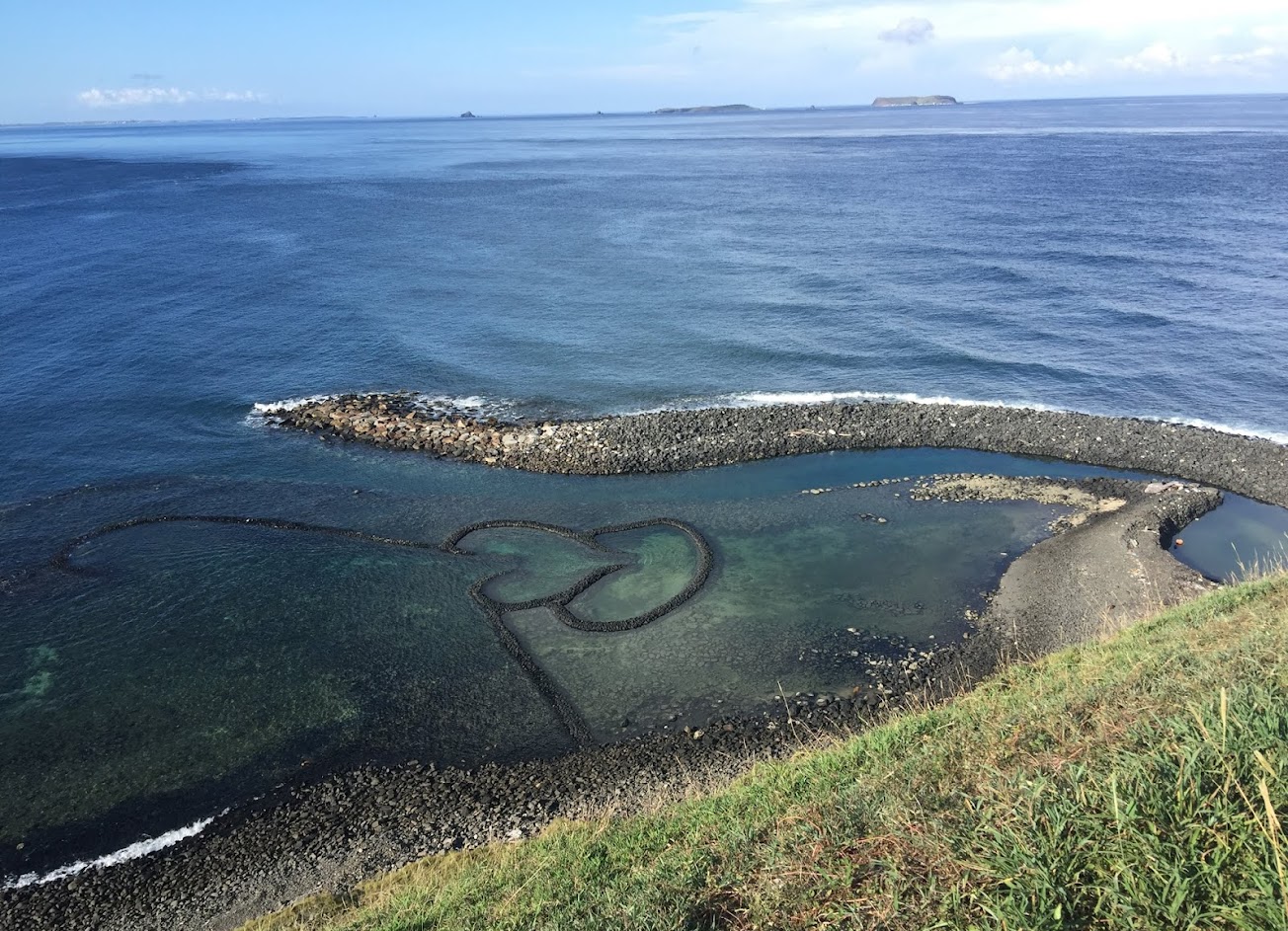 永恆愛戀的象徵.浪漫雙心串聯古老石滬