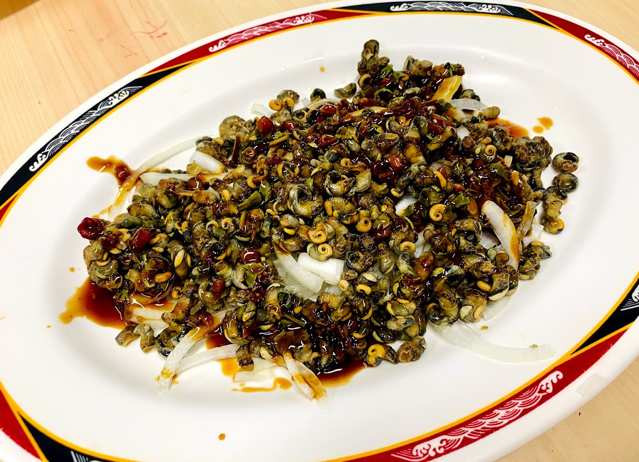 跟國ㄧ的兒子點了冰卷、糖醋魚塊、炒海瓜子、鹹魚炒飯、澎湖絲瓜