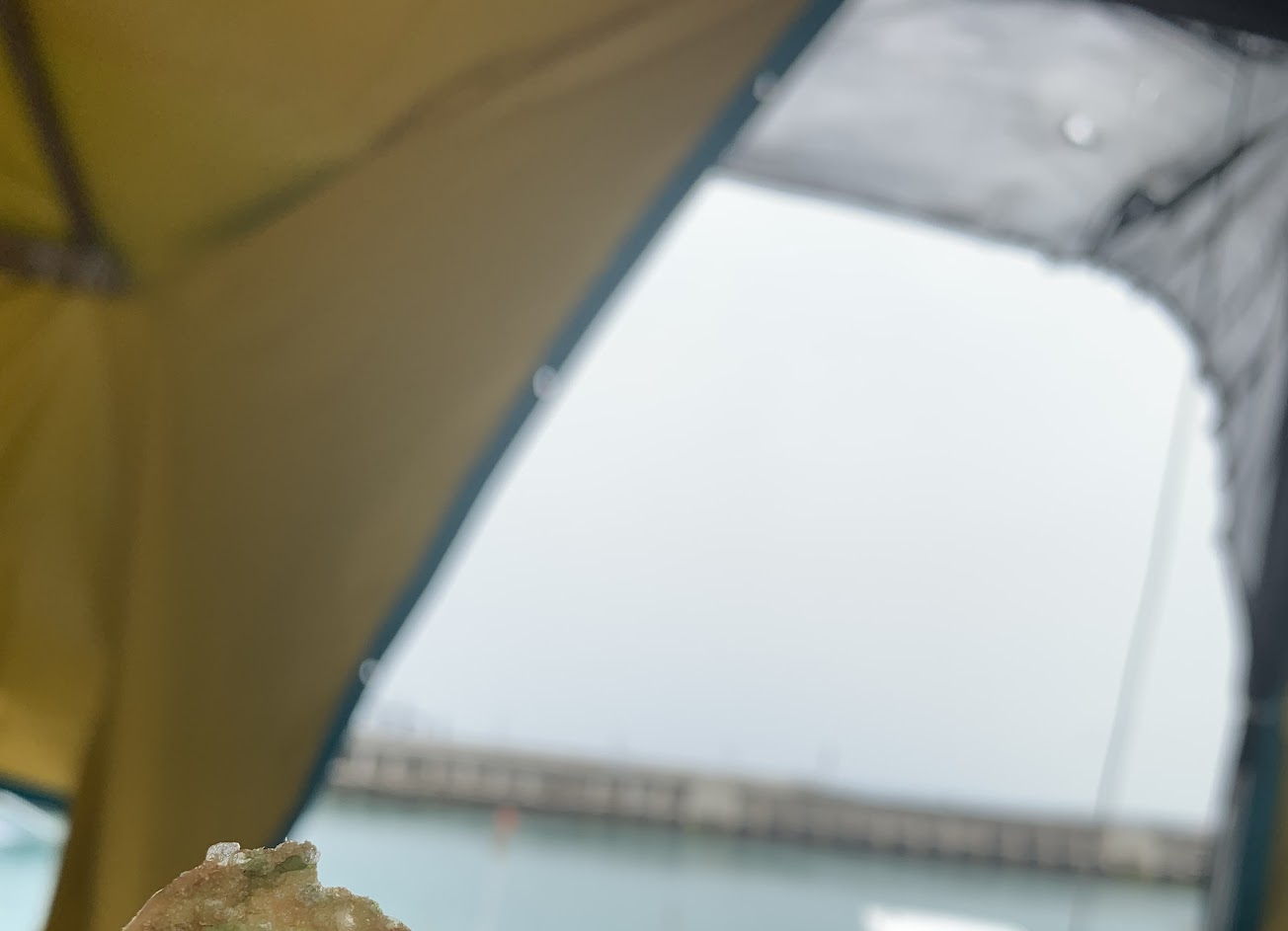 意外的好吃,加蛋像是炸蛋蔥油餅口感酥脆,海菜味很香但不會過重有海腥味,夏天適合再買個飲料的旁邊古榕下吹風享用。附近也可以欣賞跨海大橋。