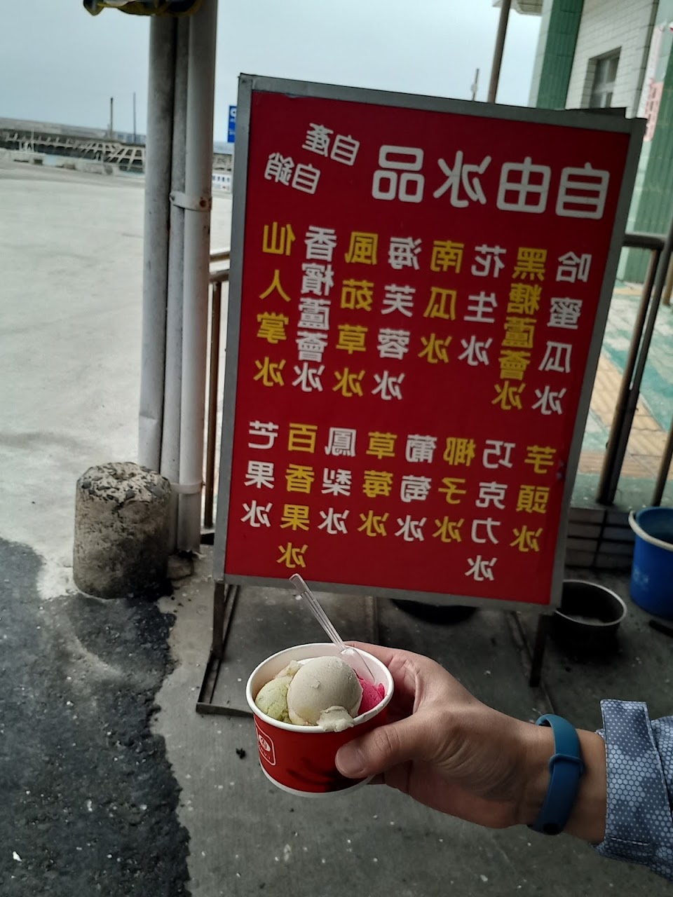 買了風茹草,冰花,海芙蓉,味道不是很強烈的那種,淡淡的,冰花裡面有菜之類的東西,整體還不錯,雖然味道並不是很突出。風很大,冰融很快,要快點吃完,然後店員小哥蠻可愛的?。 …