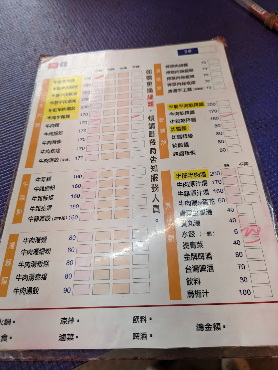 看起來暗暗的以為沒營養,沒想到進去還非常古色古香的,環境乾淨、牛肉有口感還大塊,湯頭濃郁、辣椒夠辣。吃飽還有免費的茶可以喝。