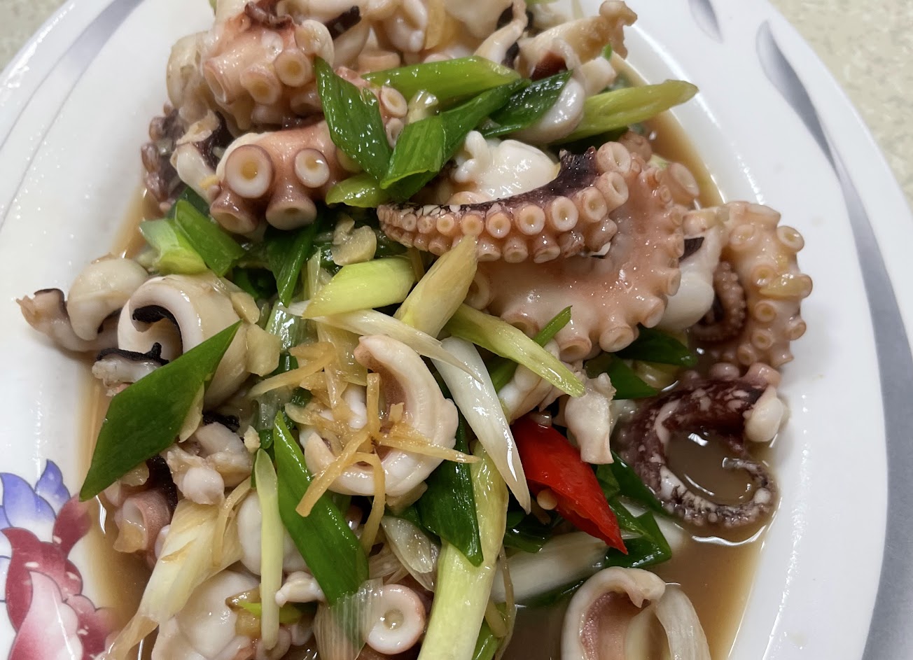 我們點了炒魚肚,海瓜子,炸花枝丸,絲瓜,海鮮炒飯,蛤蠣湯,都是小份+一瓶麥茶,總價1040,好便宜。給大家參考。 …
