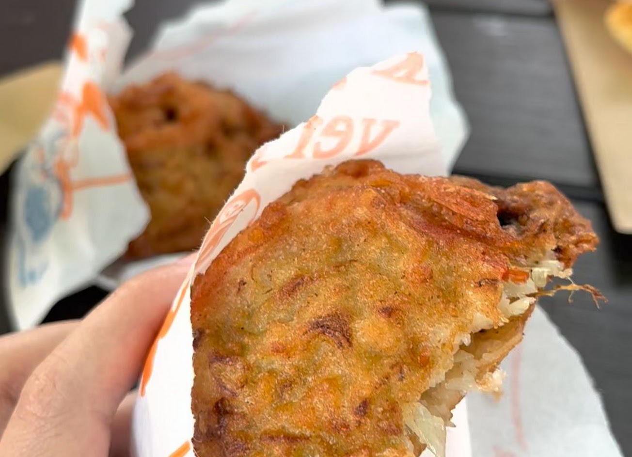 跟本島的軻碟差異在這邊內餡用的是較生的高麗菜絲,是個不錯的點心,整體口味偏油