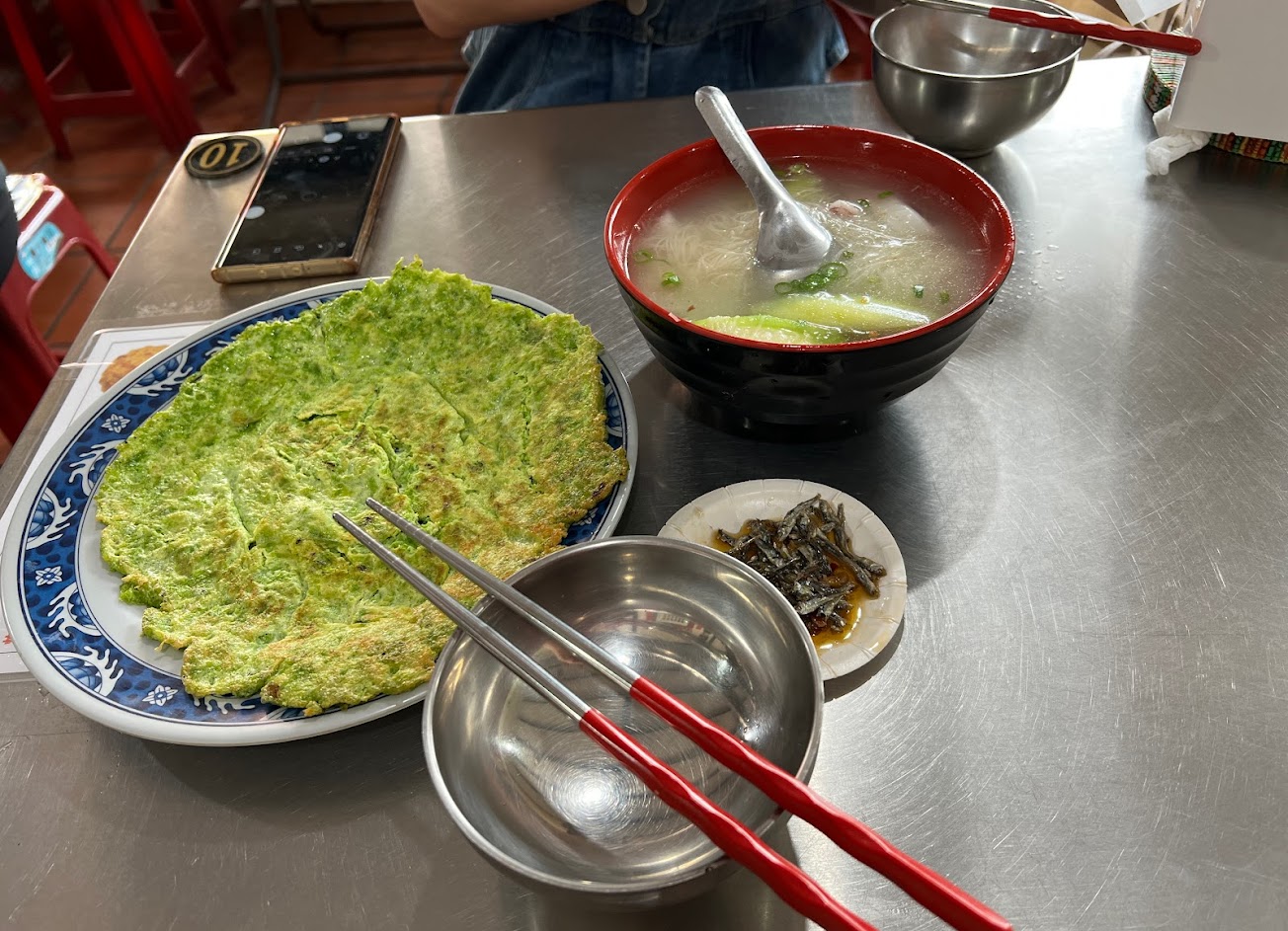 我們點了小管乾滷肉飯、海菜煎蛋、小管絲瓜麵線????
