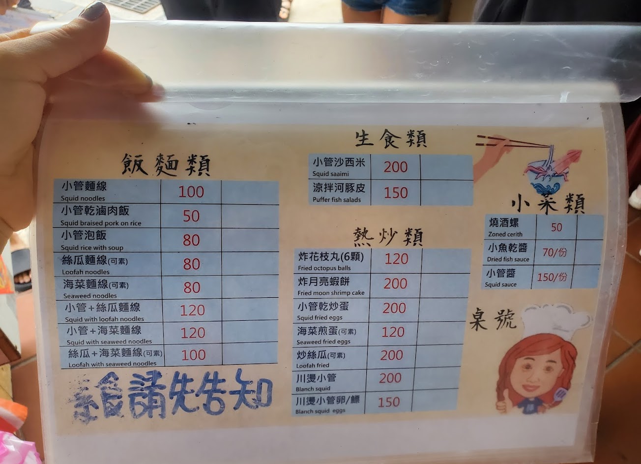 《小管麵線100元》