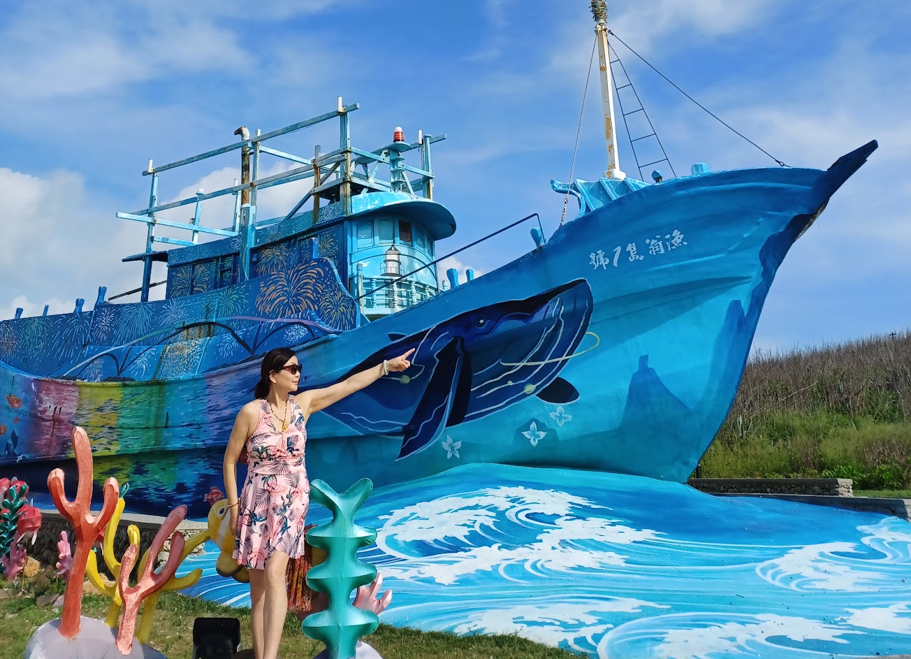 從鯨魚洞要往跨海大橋回馬公路上,看到這艘美麗的彩繪船,特地停下來拍照,很漂亮值得一看❤️