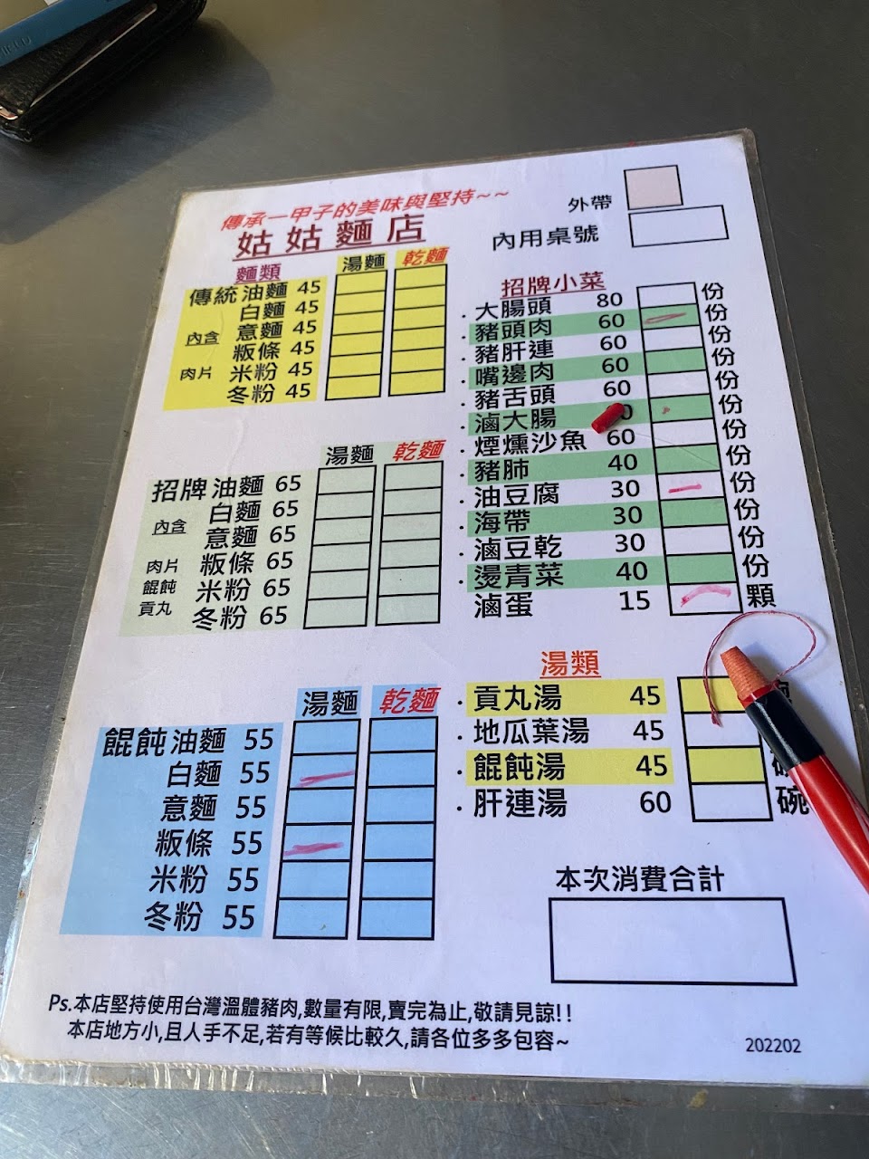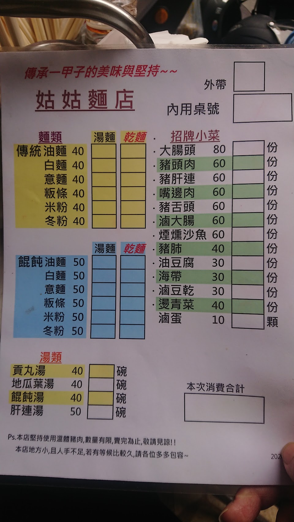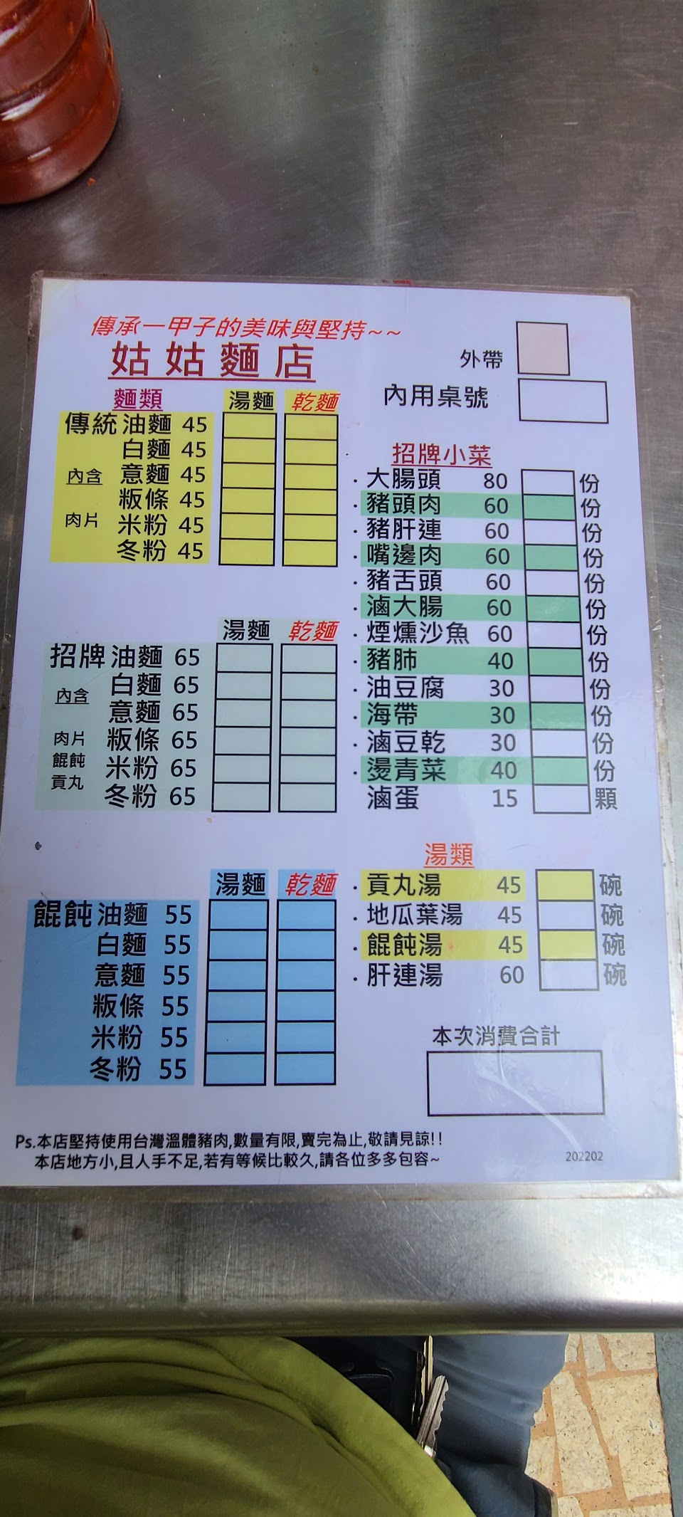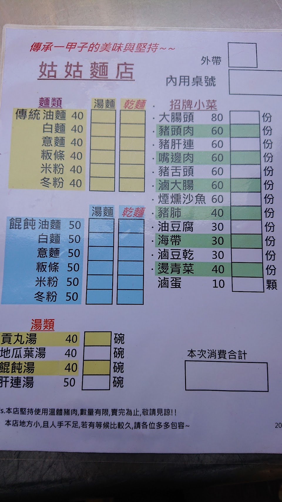2024最新在地推薦餐廳的菜單_姑姑麵店的菜單、圖片