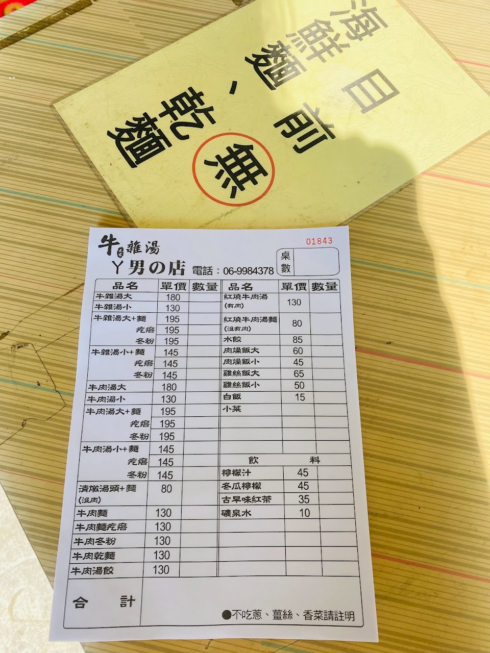 早上9點開了快一小時的車來阿男這邊吃早午餐,不得不說牛雜湯跟牛肉湯真的很好吃,牛肉片、牛肚都很軟嫩!清湯又很順口!原本晚上想再跑來買宵夜但可惜只開到下午一點 哈哈,下次來澎湖一定會再來的!