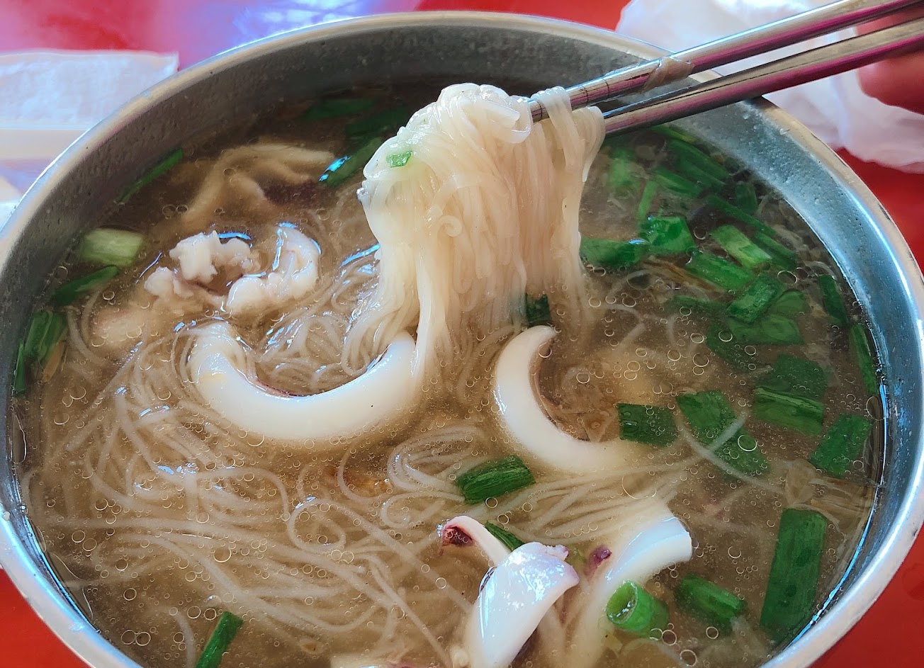 小管麵線,麵太爛了,但湯頭和小管表現都很棒