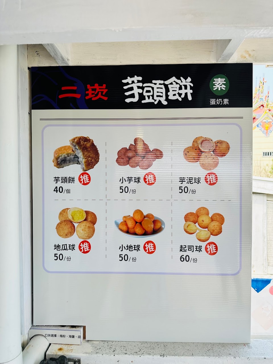 小地球很好吃 裡面整顆都地瓜泥,外脆內軟,非常特別。 芋頭餅餅皮脆餡料足,值得二訪。 二崁行程表可以加進來~