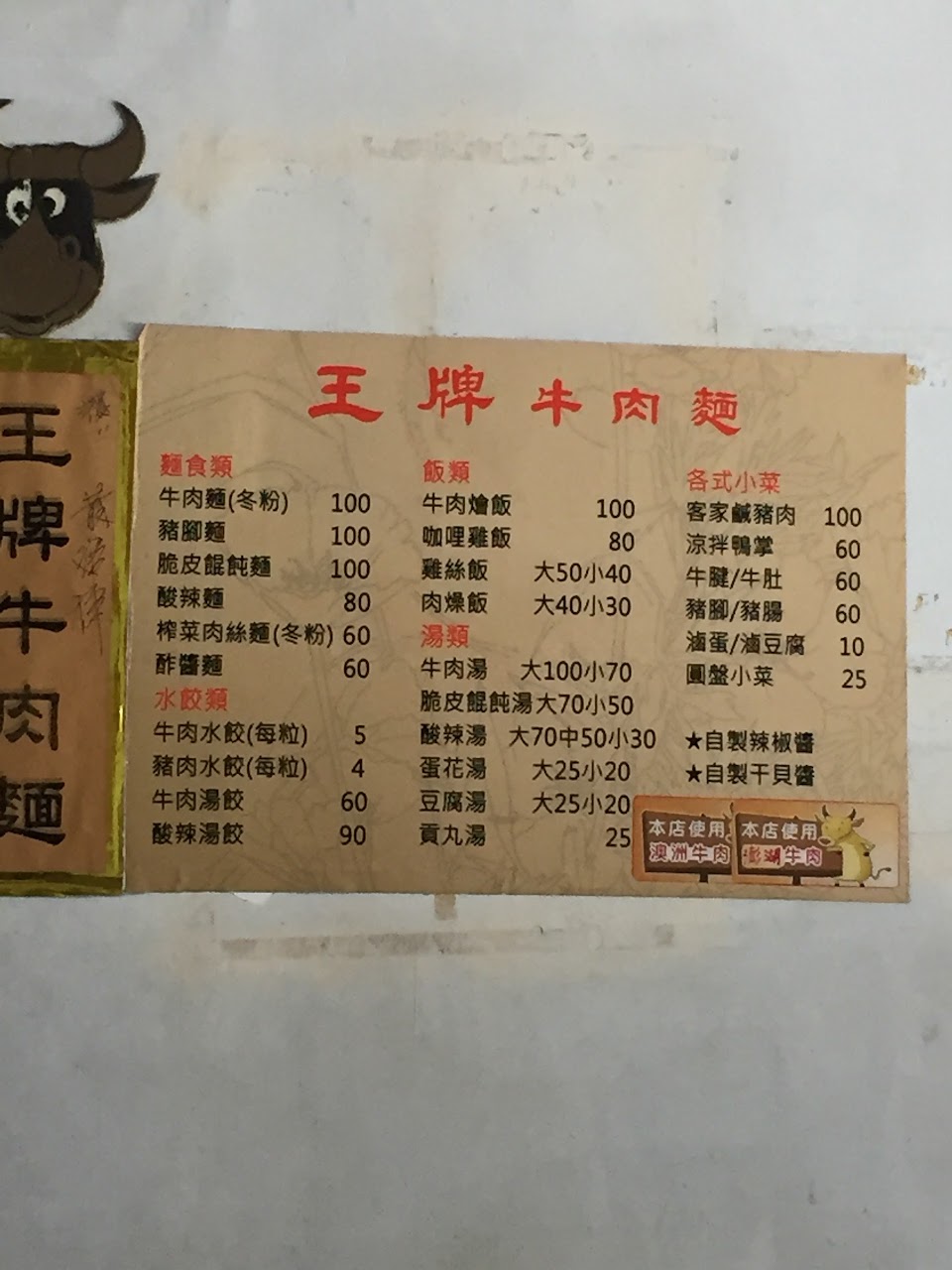 2024最新在地推薦餐廳的菜單_王牌牛肉麵的菜單、圖片